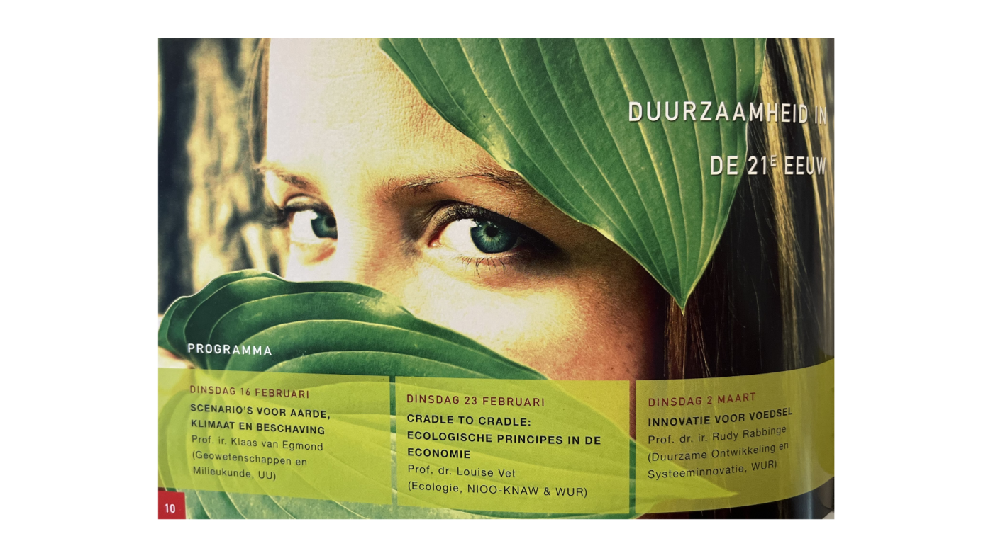 Dat is nu wel even anders. Vanaf 2010 organiseert SG een jaarlijks terugkerende lezingenreeks onder de noemer 'Duurzaamheid als wereldbeeld', en aan de Universiteit Utrecht is het een van de meest urgente thema's van onderzoek. Maar in het politieke debat is het naar de achtergrond geschoven ondanks alle alarmerende berichten die stellen dat de klimaatcrisis een bedreiging vormt voor de nationale veiligheid. Het wordt ondergesneeuwd door geopolitieke issues en migratieproblematiek. Klimaattoppen leiden tot niets. Wereldleiders kijken weg. En burgers lijken apatisch. Alsof overstromingen, droogtes, bosbranden en het uitsterven van biosdiversiteit samen één grote storm vormen die vanzelf wel weer overwaait.